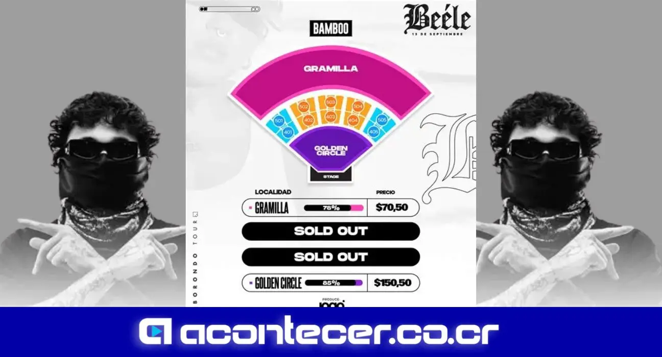El show se realizará el próximo sábado 13 de setiembre en Parque Viva, Alajuela, y se perfila como una de las presentaciones más destacadas del año. Para los fanáticos que aún no han asegurado su espacio, las localidades disponibles son Gramilla, con un precio de $70,50, y Jogo Golden Circle, con un valor de $150,50. Ambas localidades ya registran más del 80% de sus entradas vendidas, por lo que la organización recomienda adquirir los boletos cuanto antes a través de la plataforma www.starticket.cr.